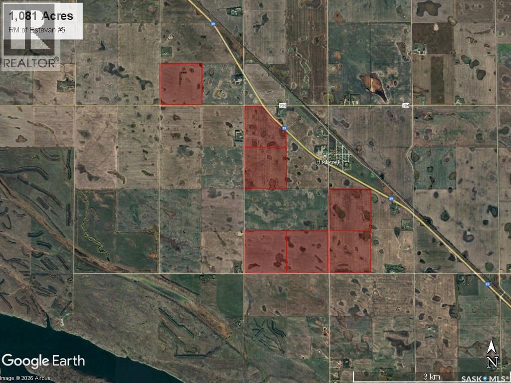 For Sale by Tender – 1,080.89 Acres of High-Quality Farmland in southern Saskatchewan located northwest of the city of Estevan near Hitchcock, SK in the RM of Estevan #5. The land features excellent access, including Highway #39 frontage, with the balance easily accessible just south of the highway. Farmed in three half sections and one single quarter all in close proximity. SAMA reports 1,006 cultivated acres* and a soil final rating weighted average of 51.24*. The soil type is predominantly Weyburn Loam with some Estevan Clay Loam. Sask Crop Insurance classifications include two “H” quarters, three “J” quarters, and two “K” quarters. The successful purchaser to begin farming the land in 2026. OFFER TENDERING PROCESS: Offers to purchase to be submitted/tendered in writing by 12:00PM on Thursday March 5, 2026 All offers to purchase will be presented at the same time to the Sellers for their consideration after 12:00PM on Thursday March 5, 2026. The Seller asks offers to be left open for five days. Offers to purchase will be considered on the entire parcel as well as parts thereof. This parcel could sell for above, at or below the asking price. Highest or any offer not necessarily accepted. ASKING PRICE BREAKDOWN: $4,100,000.00; $3,793.17/Titled Acre; $4,075/SAMA Cultivated Acre*; 2.13 X Assessed Value*. The Seller is in the process of removing a parcel tie from the NW 22-3-9 W2 Ext 1 as only the 127.16 acre parcel south of the highway is included in the sale, closing for this parcel will be after the parcel tie is removed. *SAMA Details are an approximation only as the NW 22-3-9 W2 assessment and cultivated acres have been approximated to remove the parcel north of the highway that is not included. Buyer to do their own due diligence. Property boundary outlines are an approximation. As per the Seller’s direction, all offers will be presented on 03/05/2026 12:00PM. (id:35980)