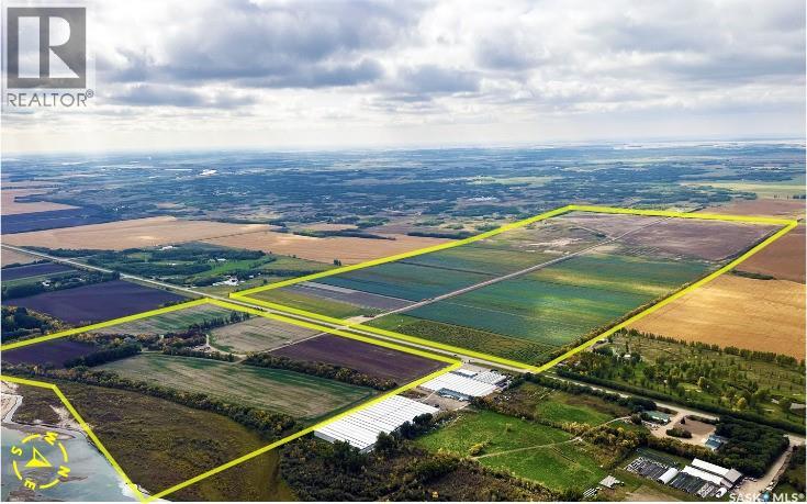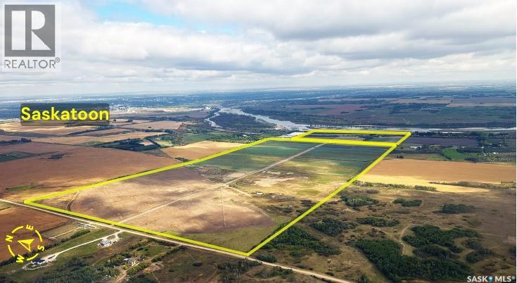 A rare paved-frontage development canvas just 2 miles south of Saskatoon in the RM of Corman Park. Five contiguous parcels totaling 395.07 titled acres on Valley Road pavement with commanding downtown skyline, 2,300 Feet of river frontage, river-valley views and a quick drive to Saskatoon International Airport. Access: Direct paved Valley Road frontage All season great access, premium buyer appeal, 4,900 Feet of pavement frontage. Location: 2,300 Feet of river frontage. Views: Elevated benches deliver city skyline + river-valley sightlines Zoning: AR1 Agricultural Residential 5 parcels / 395 acres Irrigation: 286 irrigated acres 1 pivot, 2 Linear and some underground irrigation. Utilities: Large powerline corridor on site Airport Proximity: Short, efficient drive to YXE Legals: Nw & Ne 2-36-6 w3, Nw 1-36-6 w3 Mineral rights included with Nw 1-36-6 w3 (except coal) (id:35980)