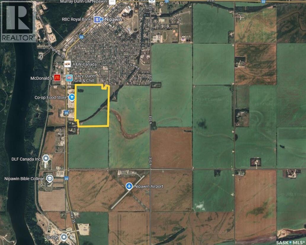 125 acres of land on the south side of Nipawin along Highway. 35. 61 of the acres is in the RM of Nipawin and 64 acres are in the town limits. Renter farming this parcel says 104 acres are cultivated. The assessed value of $141,600 is for the 61 acre portion only. and it is soil class E. The 64 acres within town limits is zoned C1 and property taxes are paid to the town, 2024 taxes are $1085.00 (town) and $590.00 (RM) The 64 acres portion in the town limits is adjacent to the Coop store, Tim Hortons, Nipawin Vision Centre, Dairy Queen and is just across the highway for the MacDonald's. (id:35980)