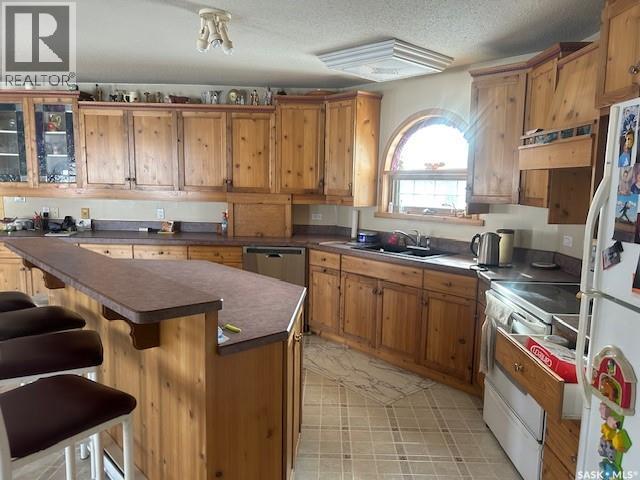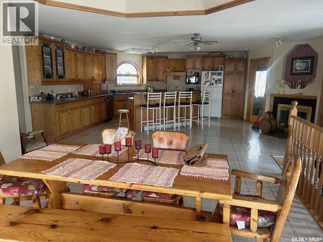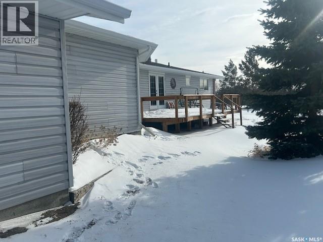 This very appealing rural home offers 1,800 sq. ft. of living space in a raised bungalow design, featuring a beautiful addition with an open kitchen and dining room highlighted by a cozy wood-burning fireplace. The main floor includes three bedrooms, a four-piece bathroom, and a convenient two-piece bathroom combined with a laundry area. The bright living room features garden doors leading to a brand-new 25’ x 13’ deck — perfect for outdoor enjoyment and entertaining. The partial basement provides a large family room with a wood stove, a fourth bedroom, and a three-piece bathroom. Additional spaces include a dedicated wood storage room with access through a basement window, a furnace room with propane furnace, a utility room with pump and water tank, and an extra storage room, offering excellent functionality and storage throughout the home.The sewer system and shingles were both updated in 2022 adding peace of mind for future owners. This listing also includes two quarters of very good farmland, currently being fenced and used as grassland, with soil quality suitable for grain production as well. The well-developed yard features a calving barn, an over-coverall shed, a 24’ x 48’ open pole cattle shelter, and a small shop — making this property well suited for a mixed farming operation, grain production, and livestock, while also offering the comfort of country living. (id:35980)
